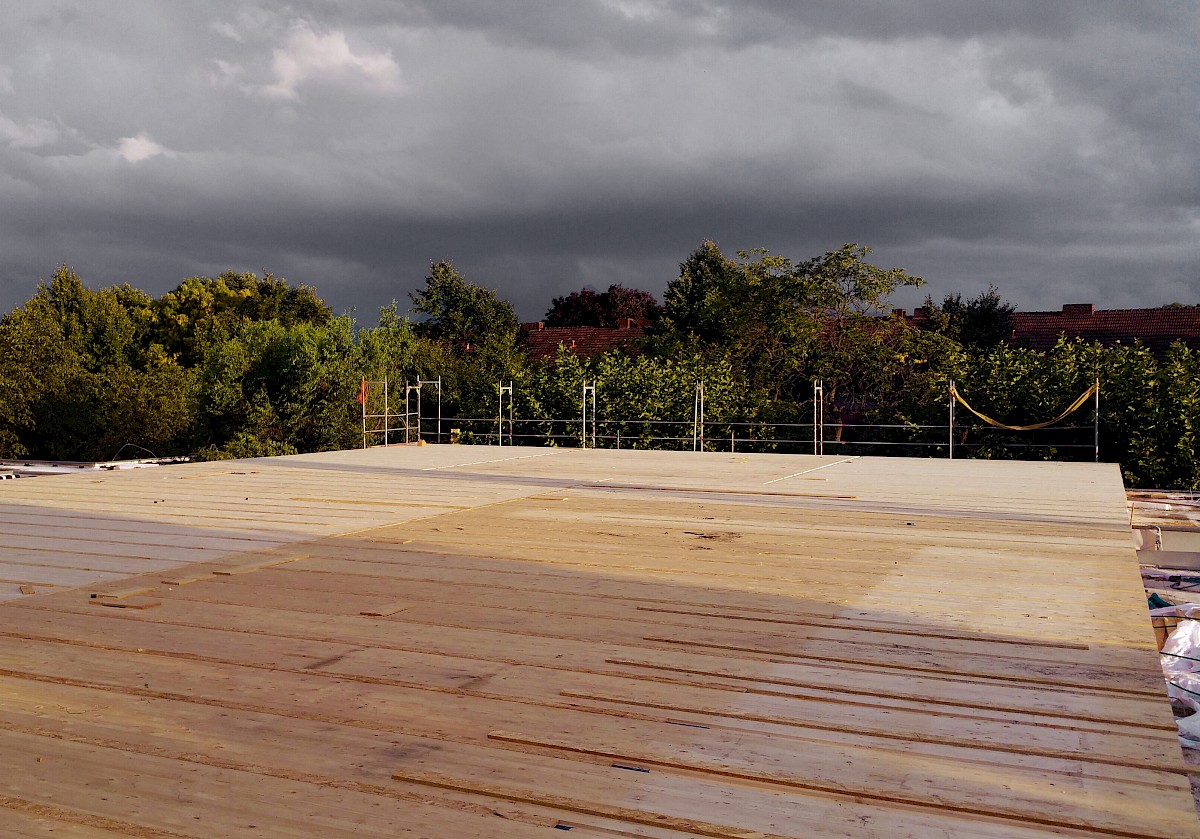 Nachdem die Unterkonstruktion vorbereitet war, wurde nach drei Tagen am 07.08.17, die Bodenplatte verlegt. Unserem Ziel, in 14 Werktagen die komplette Hülle für einen dreigruppigen Kindergarten auf einem vorhandenen Kindergarten zu errichten, kommen wir damit ein gutes Stück näher... demnächst mehr...