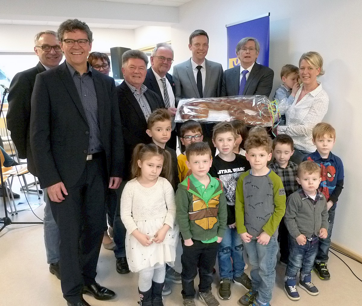 hintere Reihe von links: Architekt Willi Latz, KiTa Leiterin Janine Lackes, Bürgermeister Martin Speicher