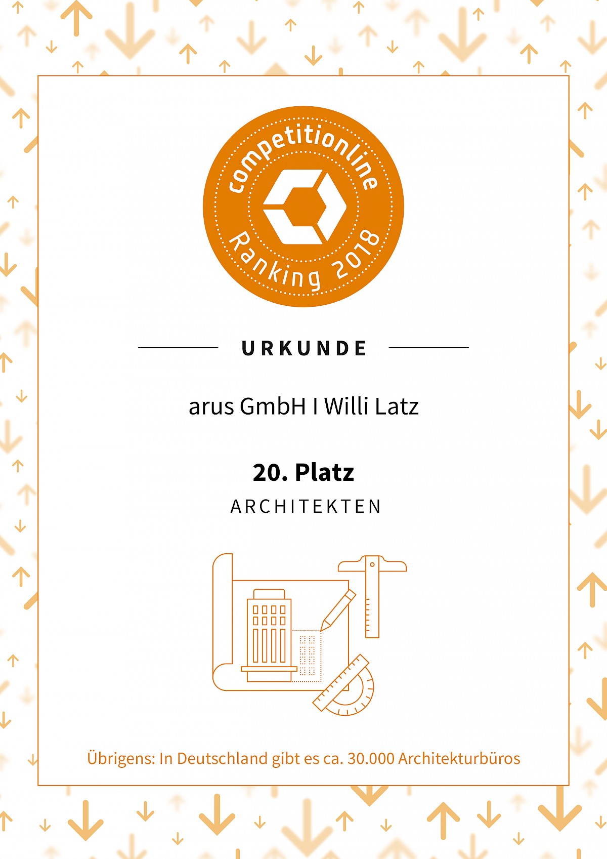 Unser Büro belegt den 20. Platz im Ranking 2018 von competitonline in der Kategorie "Architekten" von 30.000 Architekturbüros in Deutschland.