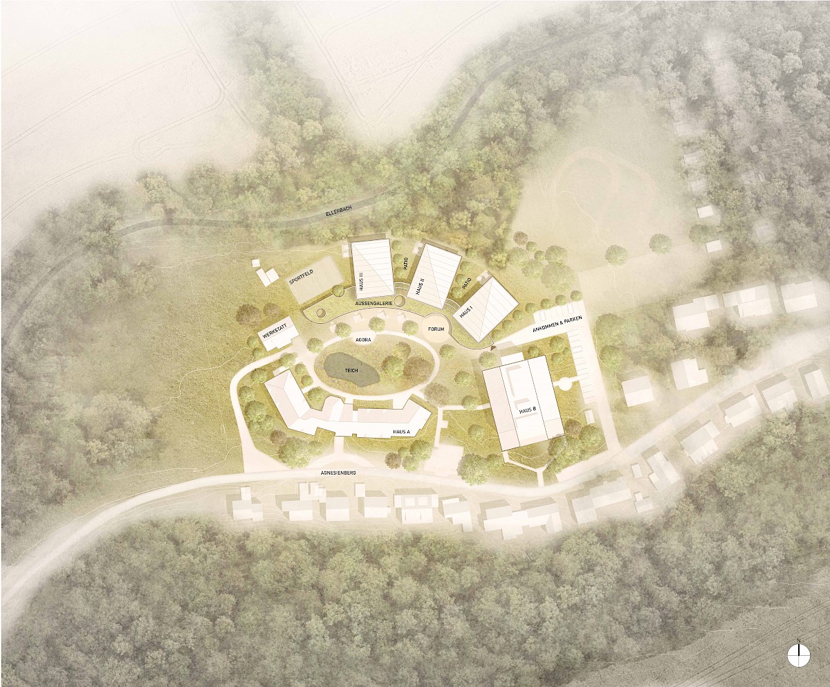 Im Realisierungswettbewerb „Ersatzbau und Umbauten im Bestand der Wohnanlage Agnesienberg der Lebenshilfe Bad Kreuznach“ wurde unsere Arbeit mit einem 2. Preis ausgezeichnet. Die Jury würdigte insbesondere „das klare Konzept zur Positionierung der Baukörper in einer städtebaulichen Großform, die sich aus maßstäblichen Einheiten zusammensetzt und dem daraus folgenden primären Freiraumkonzept." (Auszug aus der Beurteilung der Jury)