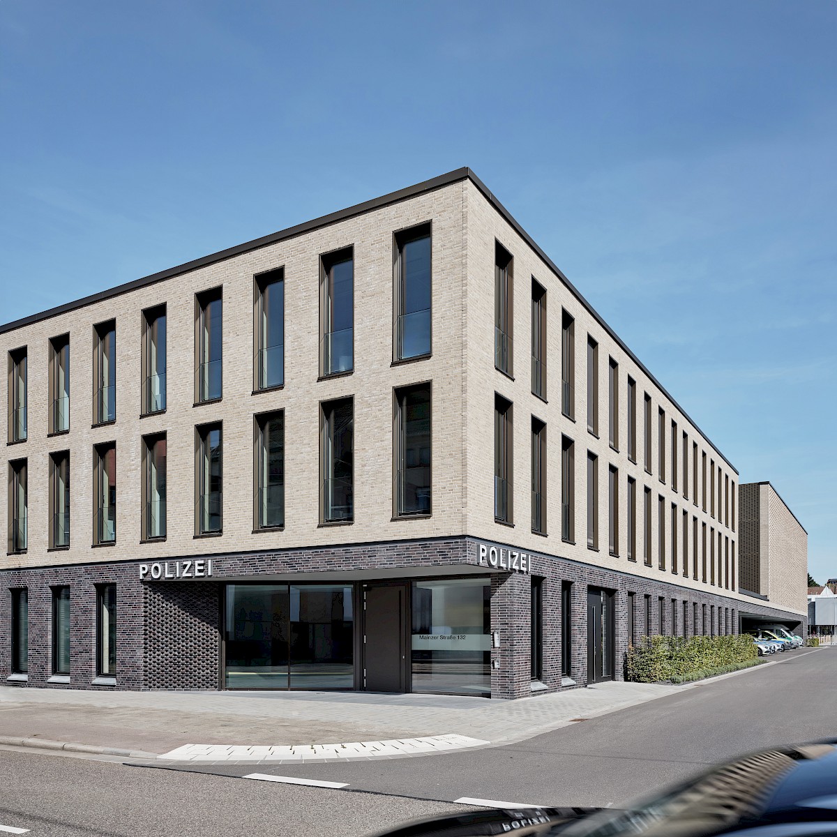 Der Neubau entwickelt mit drei eigenständigen Baukörpern für Inspektion, Gewahrsam und Parkhaus ein stimmiges städtebauliches Ensemble, das mit einer selbstbewussten Architektur die Bedeutung des öffentlichen Sicherheitsgebäudes betont. Dabei steht die differenzierte Klinkerfassade für Langlebigkeit und Vertrauen und fügt sich sensibel in das städtische Umfeld ein. Ein klar strukturierter Eingang und helle, mit natürlichen Materialien gestaltete Innenräume erzeugen eine Arbeitsumgebung mit hoher Aufenthaltsqualität. Mit einer Balance aus Repräsentation, Funktionalität und Sicherheitsanforderungen in einem 24/7-Betrieb wird ein auf die Nutzer perfekt zugeschnittener moderner Arbeitsort geschaffen.
