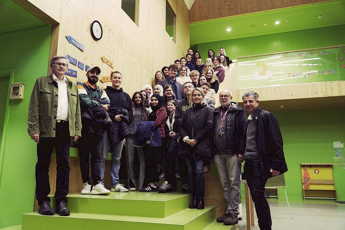 Im Rahmen einer Besichtigung präsentierte Willi Latz Studenten von Prof. Matthias Michel, Prof. Ulrike Fischer und Prof. Klaus Köhler der HTW des Saarlandes das Projekt Kindertagesstätte Völklingen.