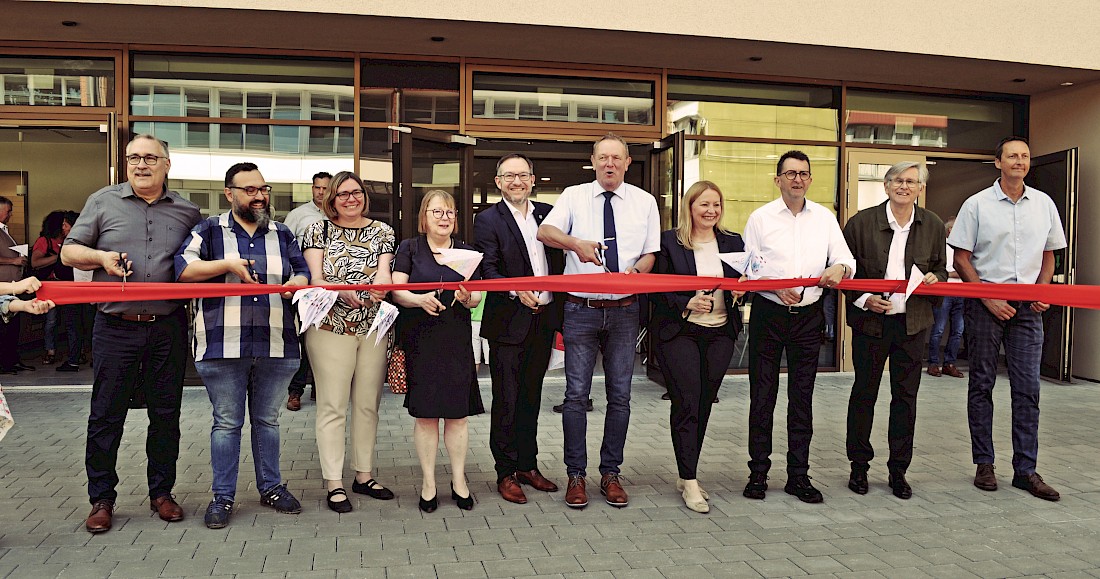 Zur offiziellen Eröffnung der Grundschule Allenfeld in Merchweiler wurde das rote Band durchgeschnitten.