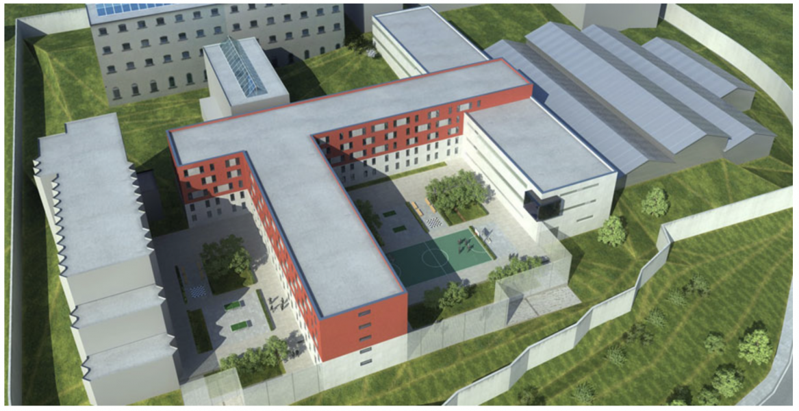 Die Justizvollzugsanstalt Saarbrücken liegt im Süden der Landeshauptstadt auf der "Lerchesflur". Der Neubau der Justizvollzugsanstalt besteht aus dem Haftgebäude mit 248 Haftplätzen, ein T-förmig verbundener fünfgeschossiger Massivbau sowie dem Werkstattgebäude auf insgesamt ca. 12.000 m2 Bruttogeschossfläche, ein langgezogener rechteckiger, zweigeschossiger Massivbau mit mittiger Anbindung an das Haftgebäude. Die Maßnahme wurde gemeinsam mit Plan 2 Architekten, München in Arumgesetzt.