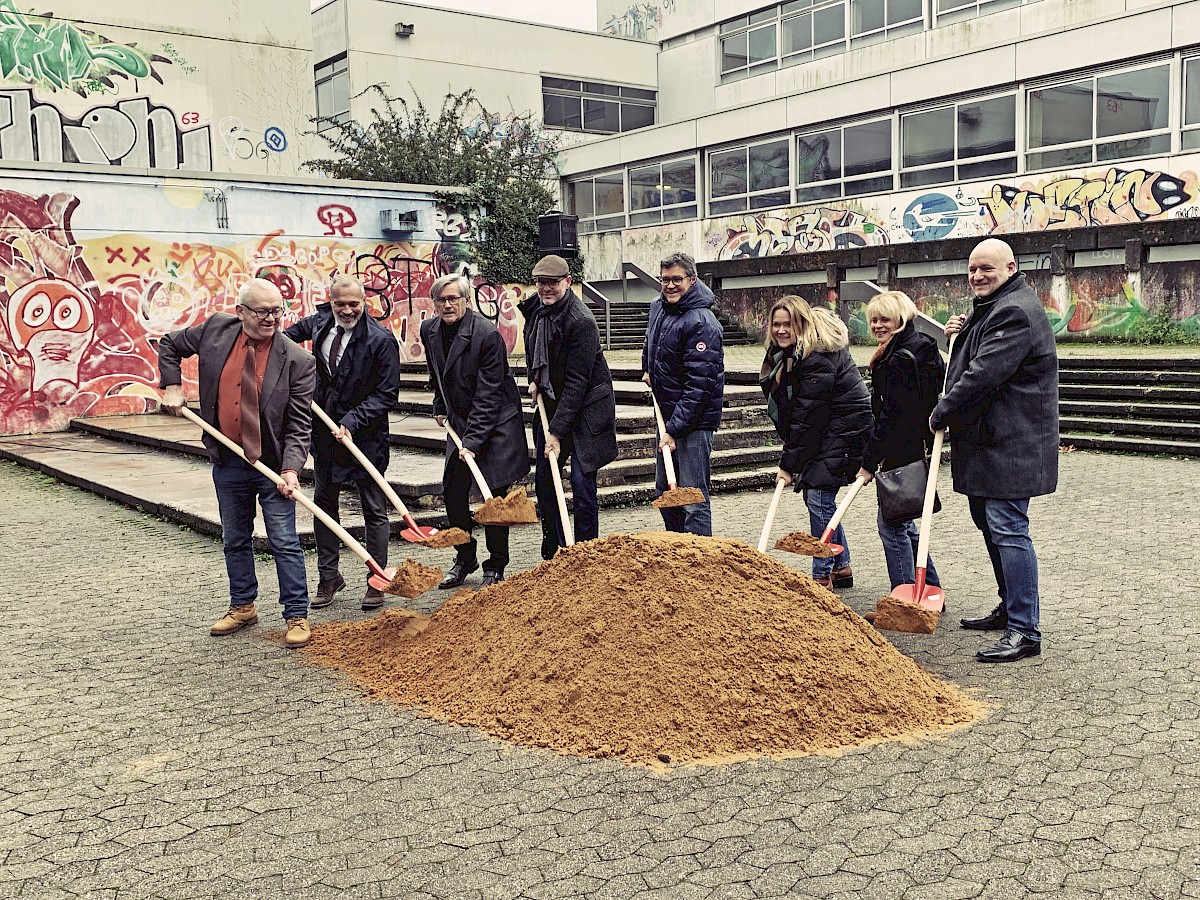 Beim Spatenstich waren unter anderem die Ministerin für Bildung und Kultur des Saarlandes, Christine Streichert-Clivot, der Bürgermeister der Kreisstadt Merzig Marcus Hoffeld, MDL Hemann-Josef Scharf sowie Prof. Edwin Kohl von kohlpharma, Merzig anwesend.