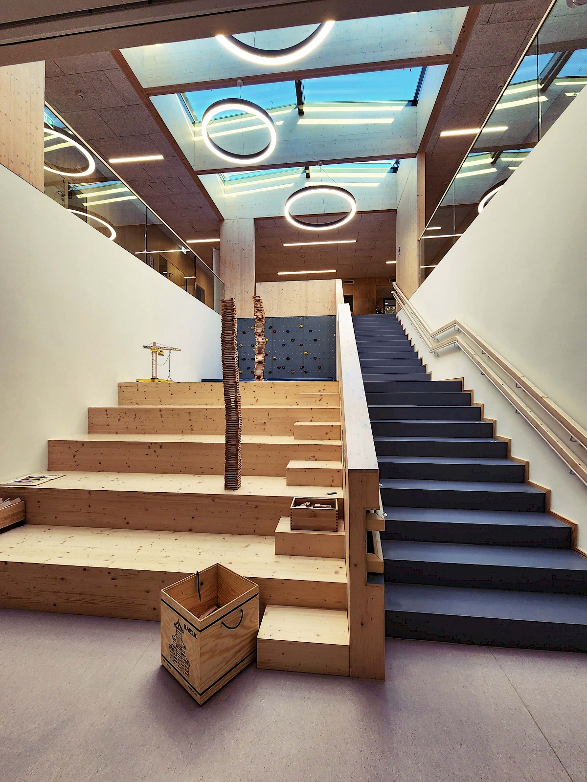Rund 150 Gäste nutzten die Gelegenheit, einen exklusiven Einblick in das architektonisch neu gestaltete Schulgebäude zu erhalten. Bei geführten Rundgängen durch das Haus präsentierte unser Büro gemeinsam mit dem Schulträger die Besonderheiten des Entwurfs – von der barrierefreien Erschließung über die neuen Lernlandschaften bis hin zum nachhaltigen Energiekonzept. Dabei wurde die Bedeutung von guter Schularchitektur für modernes Lernen betont – und wie durchdachte Planung zur Verbesserung des Schulalltags beitragen kann.