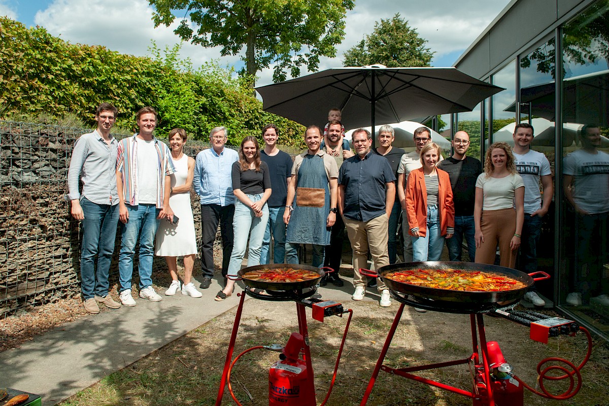Im Rahmen des heutigen Paella-Festes verabschieden wir unseren geschätzten Kollegen Jesus, der uns nicht nur mit seiner fachlichen Kompetenz, sondern auch mit seiner spanischen Lebensfreude bereichert hat. Passend zu seiner Heimat gibt es Paella – und wir hoffen sehr, dass wir heute eher wie Villarriba feiern und genießen dürfen, anstatt wie Villabajo anschließend den Abwasch zu machen. Lieber Jesus, wir danken dir für die gemeinsame Zeit, die tolle Zusammenarbeit und wünschen dir für deine Zukunft alles Gute, viele spannende Projekte – und immer genug Paella auf dem Tisch.